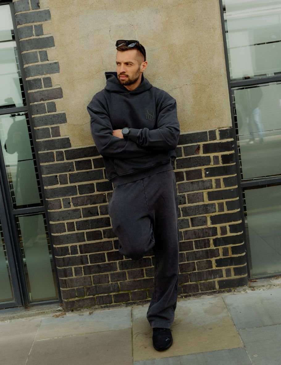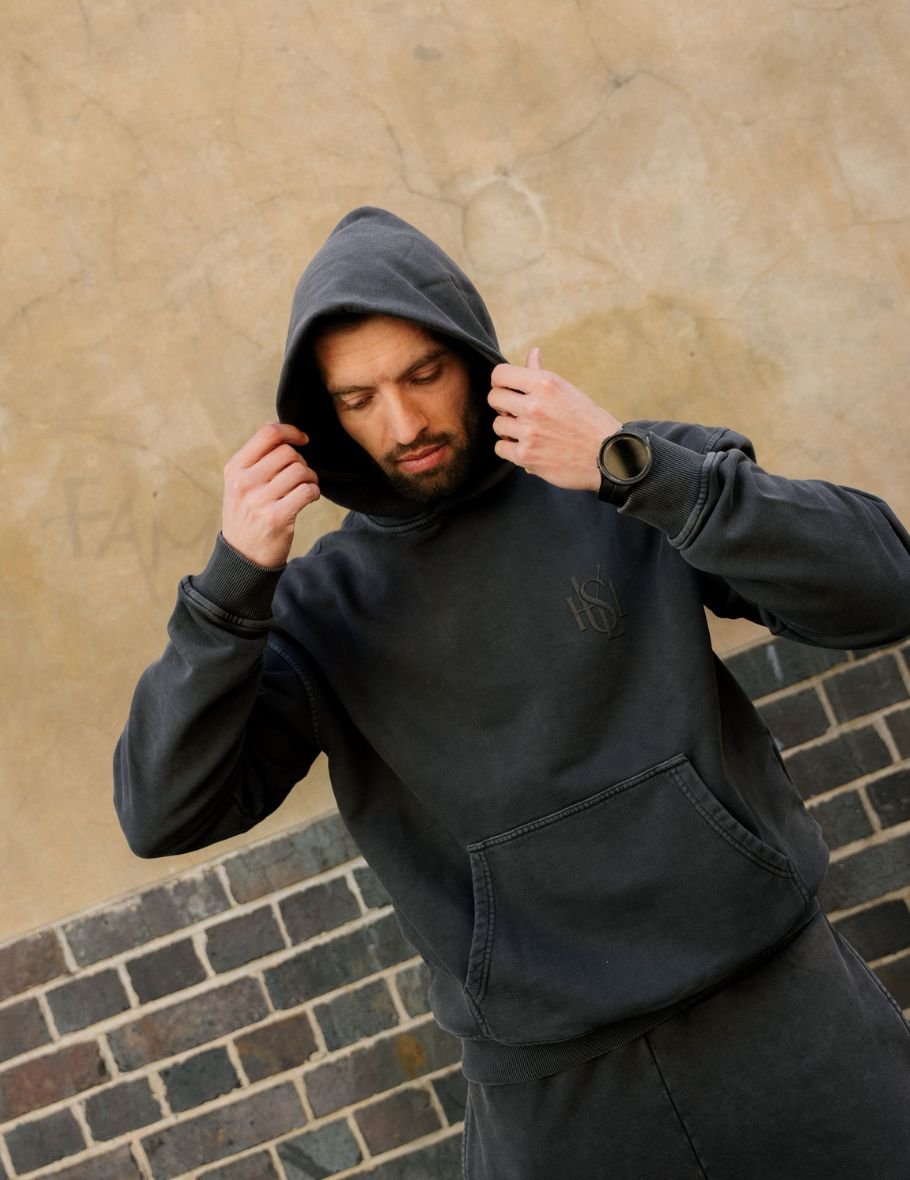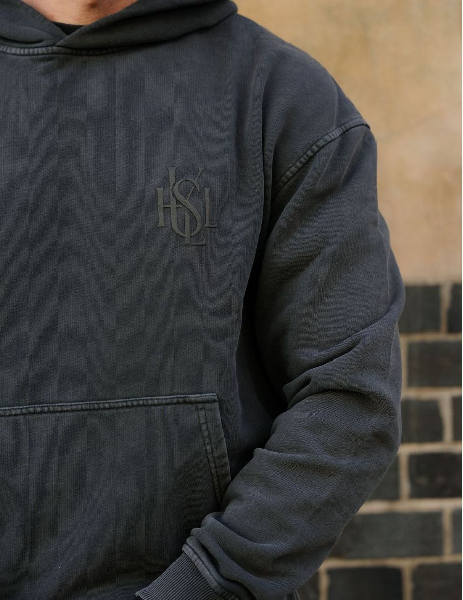 Featuring an oversized fit with sloping shoulders, it delivers a relaxed silhouette perfect for modern street styling. The front is detailed with subtle MOE CHARLIE logo embroidery, adding a refined branded touch, while the unique blurring effect enhances its contemporary aesthetic.