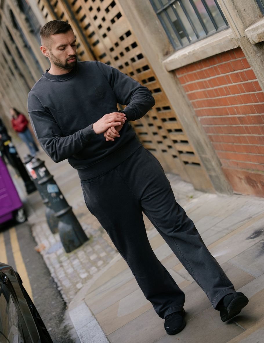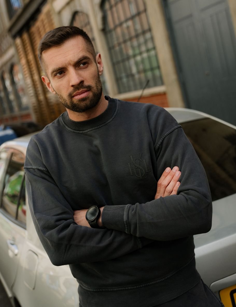 Oversized unisex sweatshirt crafted from 460 GSM medium-weight French terry cotton. Features a relaxed fit with sloping shoulders, round neck, and a modern blurring effect. Made in Portugal for premium comfort and everyday wear.